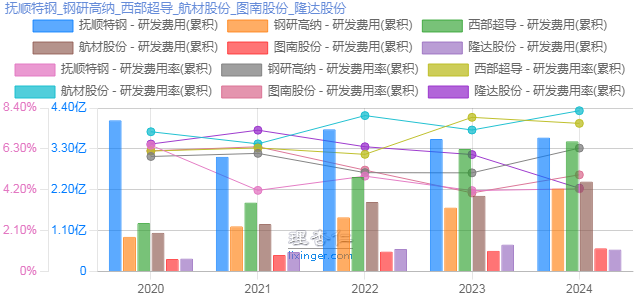1)研发费用:抚顺特钢>西部超导>航材股份>钢研高纳>图南股份>隆达股份