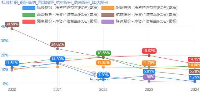 3)净资产收益率:图南股份>西部超导>钢研高纳>航材股份>隆达股份>抚顺特钢