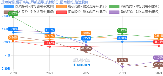 3)财务费用率:航材股份<隆达股份<图南股份<抚顺特钢<钢研高纳<西部超导