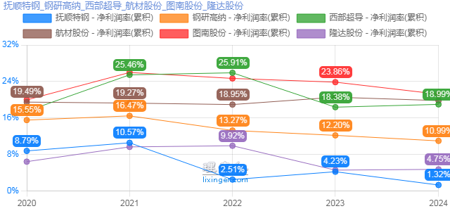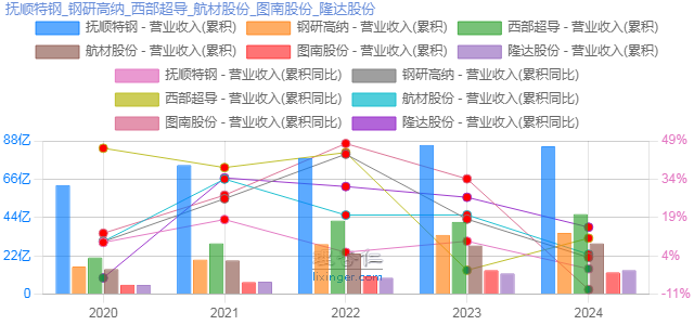 抚顺特钢vs 钢研高纳vs西部超导vs航材股份vs图南股份vs隆达股份