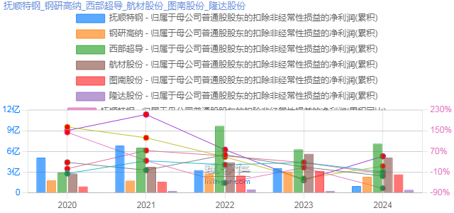 3)扣非净利润:西部超导>航材股份>图南股份>钢研高纳>抚顺特钢>隆达股份