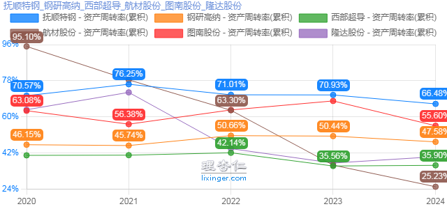 1)资产周转率:抚顺特钢>图南股份>钢研高纳>隆达股份>西部超导>航材股份
