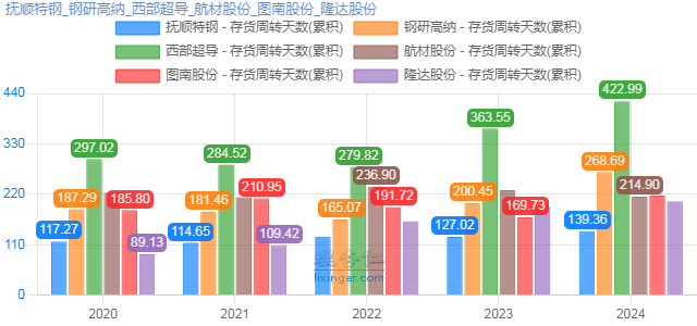 2)存货周转天数:抚顺特钢<隆达股份<航材股份<图南股份<钢研高纳<西部超导