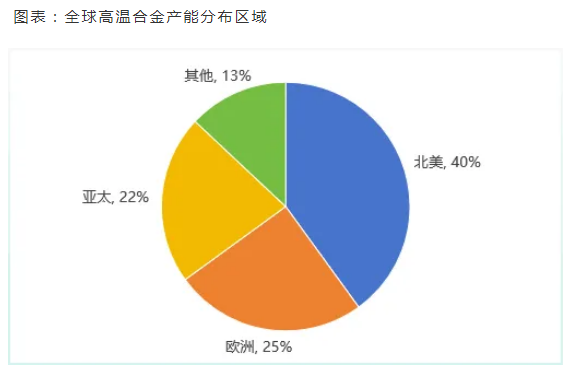 其中,镍基高温合金占比超过65%,钴基和铁基合金分别占25%和10%。北美与欧洲凭借成熟的产业链和技术优势,长期占据全球产能主导地位,分别占全球产能的40%和25%。